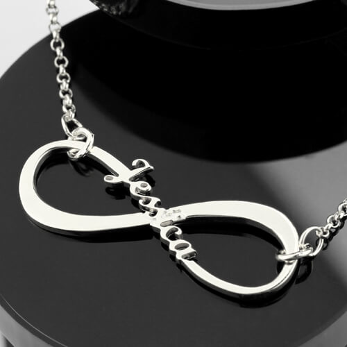 Personalisierte Halskette mit kleinem Namenszug im Infinity-Symbol, Sterling Silber